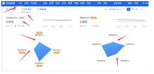 天猫代运营这次就从首页最上面向下依次给大家介绍我们日常运营过程中需要用的地方,首先第一个就是整体的运费、服务和管理三大视窗,其中运营之前就有,而管理视窗是我们日常目标进度,不是重点要关注的,所以就不多说了。我们重点说一下这个服务,我们都知道今年淘宝最重要的考核就是服务这一项,所以我们要经常关注这一块,从图上可以看到整体服务是不达标的,这也就是说我们有做的不好的地方,然后下面详细列出了主要考核的项目以及做的好与不好的地方,可以发现在日常经营中商品体验和售后做的不好,导致质量得分不合格,我们就需要去重点优化这两项。