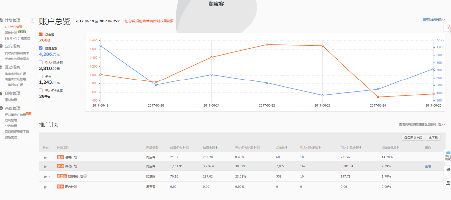 淘宝客第一次进入的时候是需要进行注册的,对于商家来说需要签约,而对卖家来说需要申请,淘宝客的用处是买家将我们的宝贝分享别的买家形成成交。就像我们现在的一个职业-媒婆,和媒婆一样,他是专门帮我们和别人牵线搭桥的,将我们的宝贝进行推广,推广给那些有需要的人,而我们的媒婆在我们和买家成交之后会向我们收取媒钱(佣金)。总的来说,淘宝客的模式就是把我们的宝贝进行推广成交,推广成交完之后再收费。淘宝客的条约1.不收取任何其他费用,只按成交收费的推广方式2.我们自己设立的佣金的,佣金的设置是按成交价乘以佣金比例算而不是一口价乘以佣金比例来计算。3.宝贝出现退款的话,佣金会在15天内返还。淘宝客的推广计划设置淘客的推广计划分为通用计划,活动计划,如意投计划和定向计划。