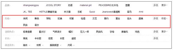 相反,如果你的店铺中,什么样的商品都有,比如说既有性感路线的,也有校园风格的,还有欧美范儿的,甚至还有中老年穿的朴素风格的女装。这时候你的标签就会很混乱,搜索引擎就不知道你到底是什么风格的,随着个性化匹配的流量越多,你能够获取的就会越少,你的流量也就会持续下滑。在这方面的建议如下: